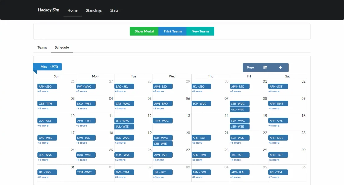 A React/Redux app that simulates a hockey league, including teams, players, stats, an 87-game schedule, and simulations up to any date in the season.